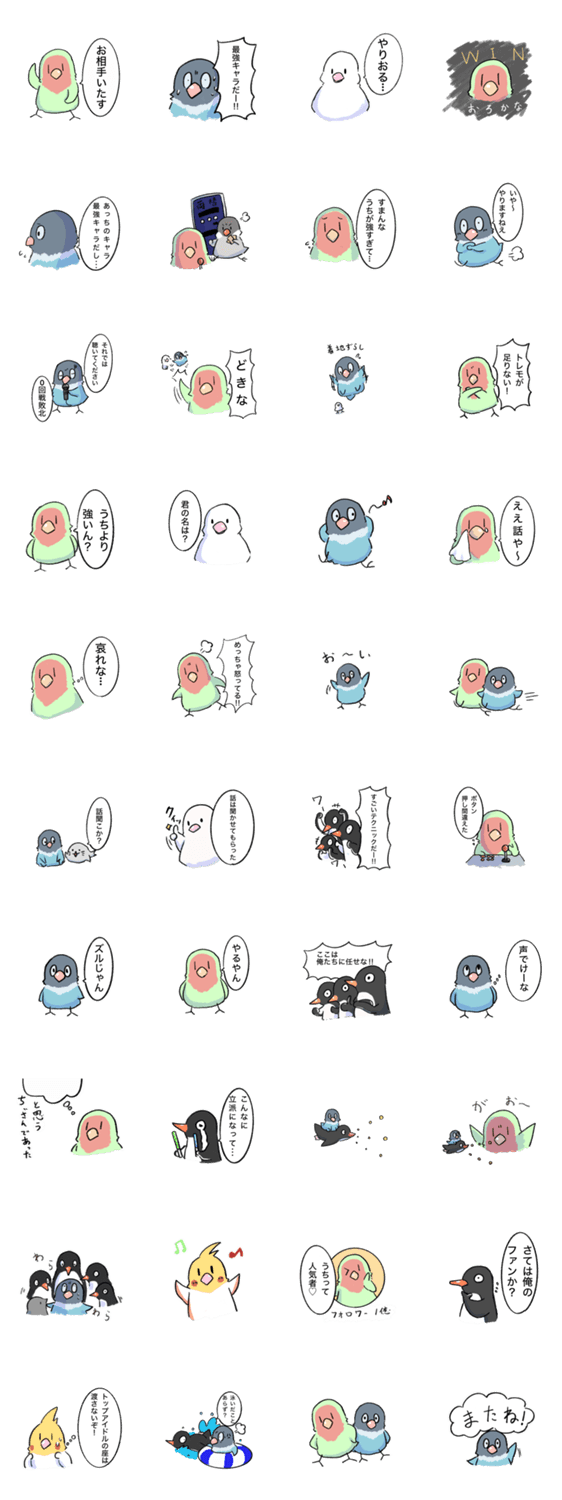 ちょっとだけ上から目線の格闘ゲームが大好きな鳥さん達のスタンプ第5弾です。素敵なお友達とハッピーな日常!会話のお供にどうぞ