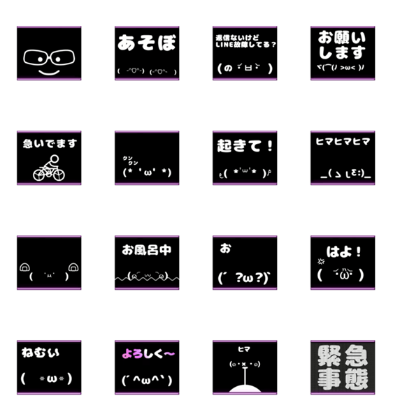 動く顔文字スタンプです。本当はもっとスタンプ数をもっと多くしたいのですが、スタンプメイカー作なので16個セットがMAXです