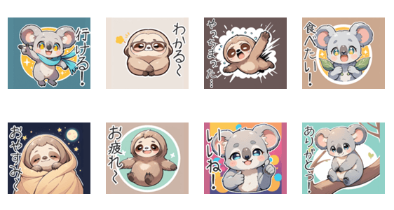 かわいくてリラックスしたコアラとナマケモノの仲間たちがあなたのチャットに登場!日常的なシーンで使える表情と楽しい雰囲気で、毎日をもっと楽しく!