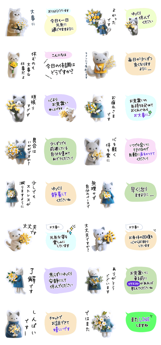 ネコ【病気見舞い】体調を気遣う温かい言葉 -LINEスタンプマニア