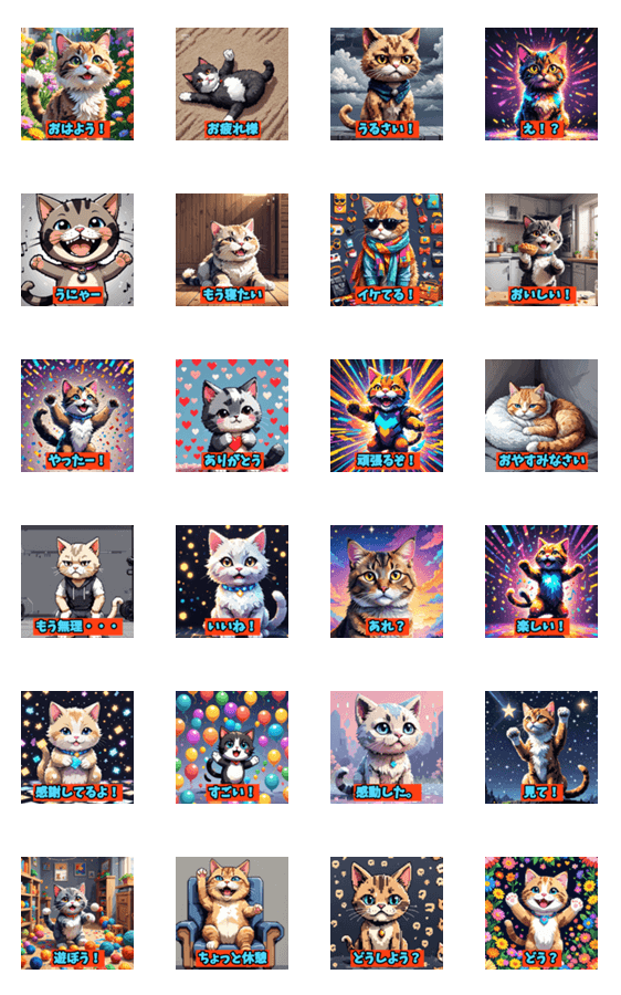 猫獣人の可愛らしい表情を楽しもう!楽しい気持ちからいたずらな顔まで、チャットにぴったりなスタンプです。