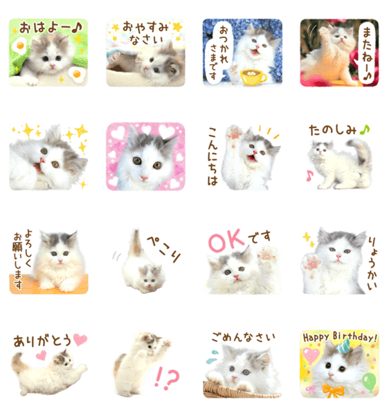 スコティッシュフォールド×ノルウェージャンのかわいいMIX猫スタンプが登場です♪