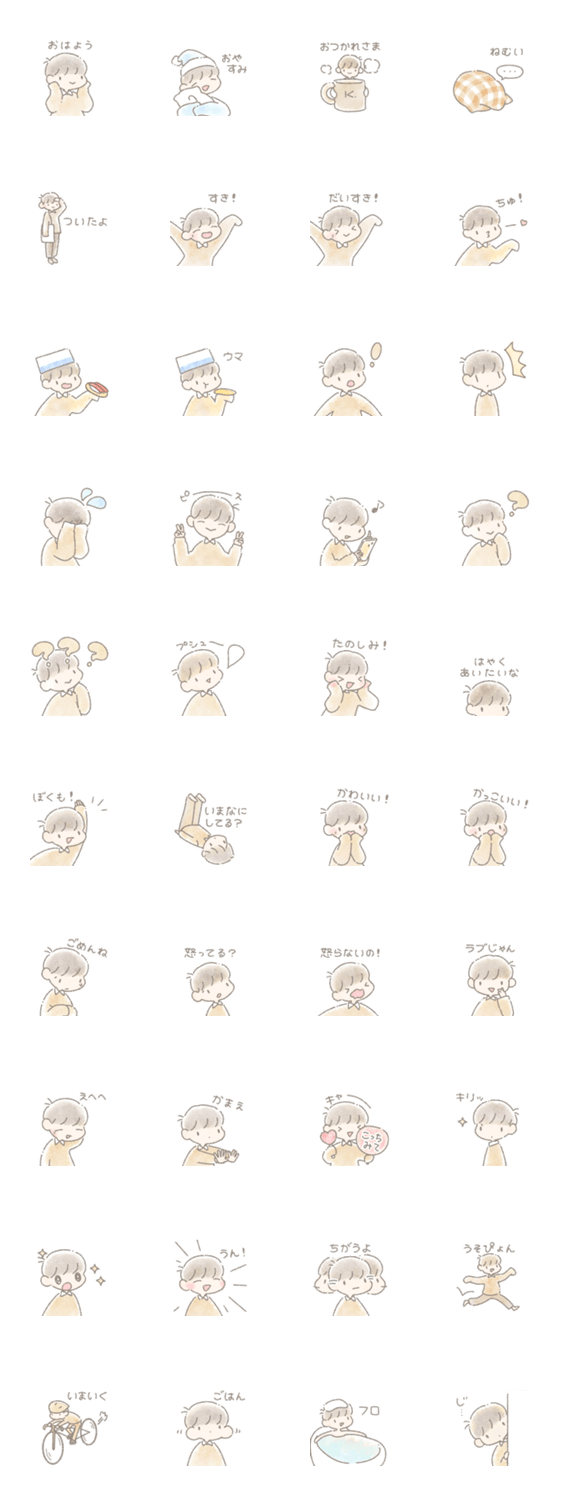 ふわふわ水彩風の男の子のスタンプです