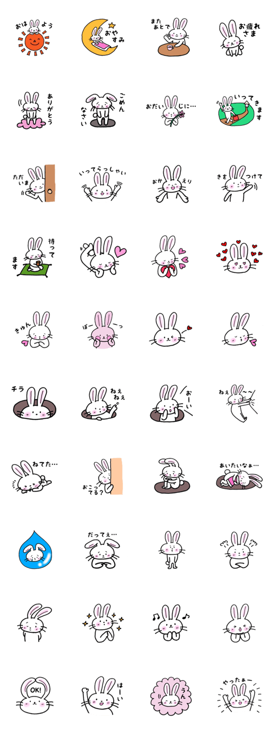 恋してるうさぎの「ふわ」のスタンプです。好きな人へのメッセージにはもちろん、なかよしの友達にもどうぞ。