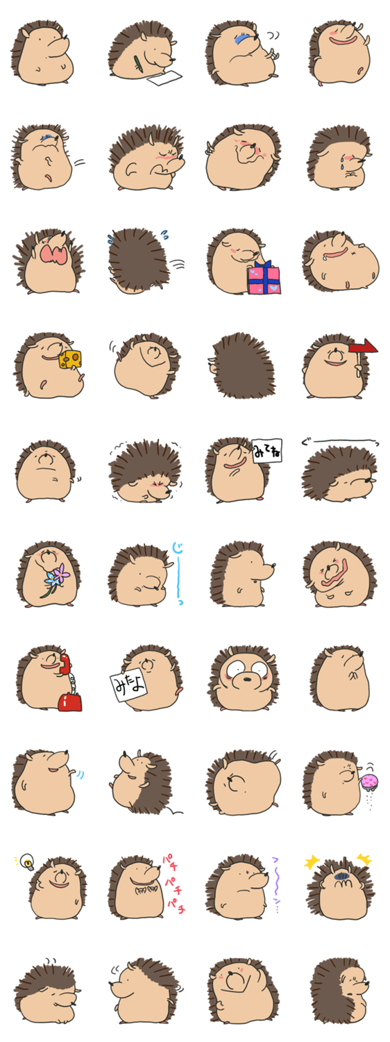 マイペースそうなハリネズミのラインスタンプです。まったりしたやりとりにどうぞ。
