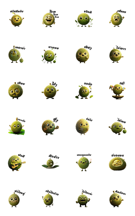| スタンプ説明 | A fun and playful sticker set featuring an adorable durian character full of energy and emotions |