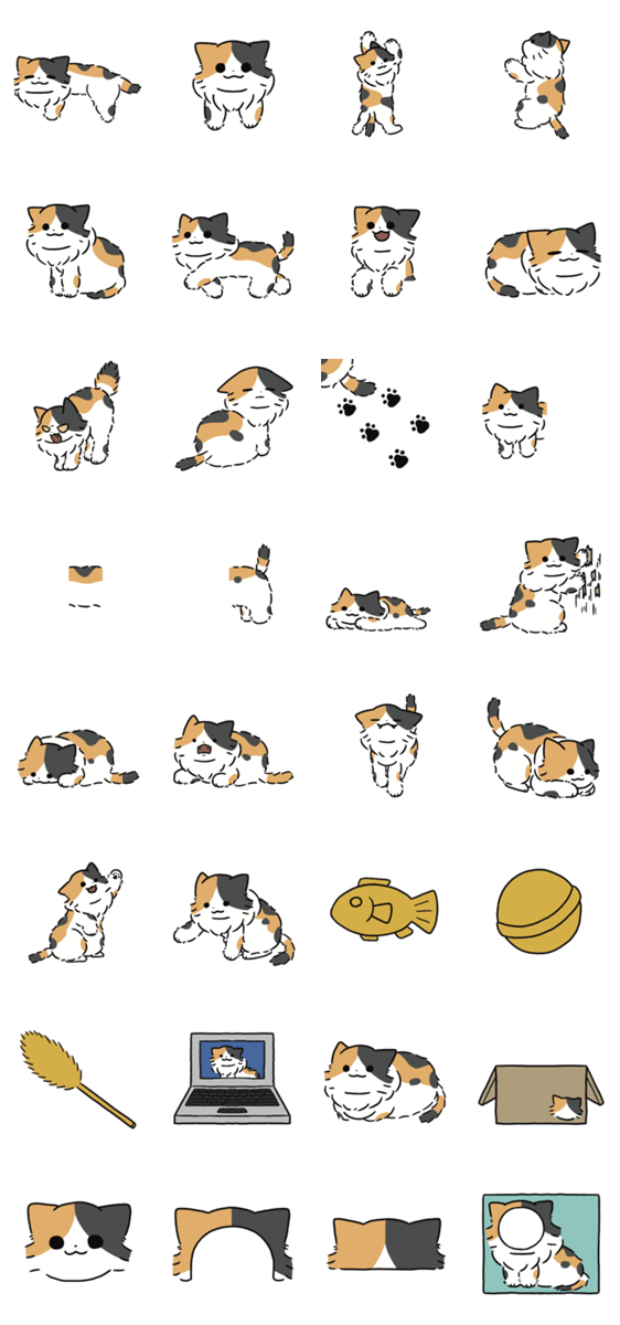 スタンプアレンジ用の長毛三毛猫スタンプです。合成にどうぞ。 みけねこ, みけ猫, ミケ猫
