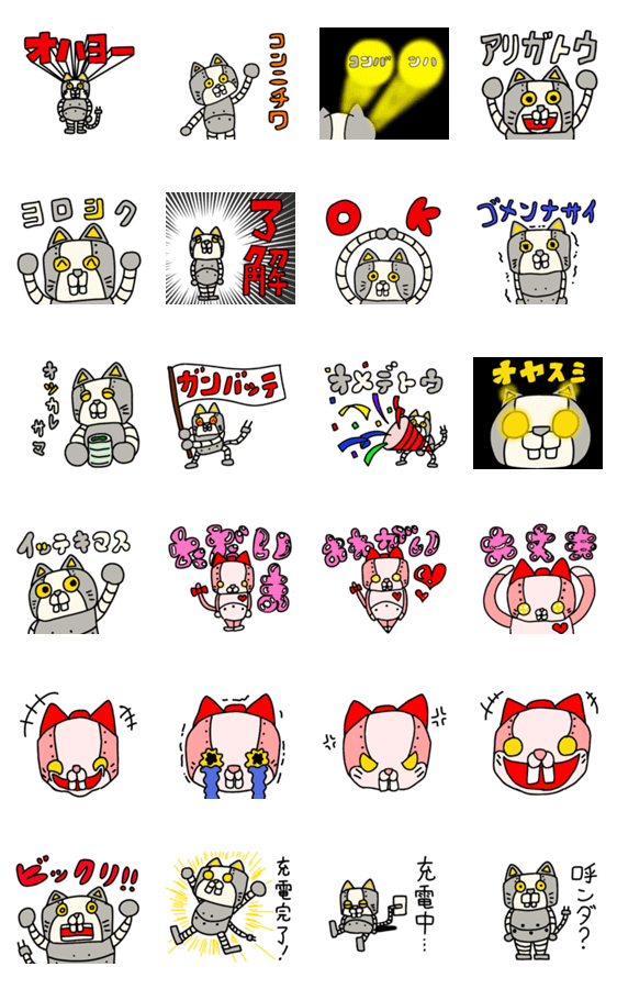 ロボデバネコとロボ猫キヨちゃんの日常会話で使えるスタンプです!