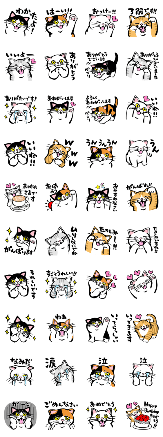 かわいい猫のスタンプ。猫いろいろ/スマイル/筆文字/毎日使える