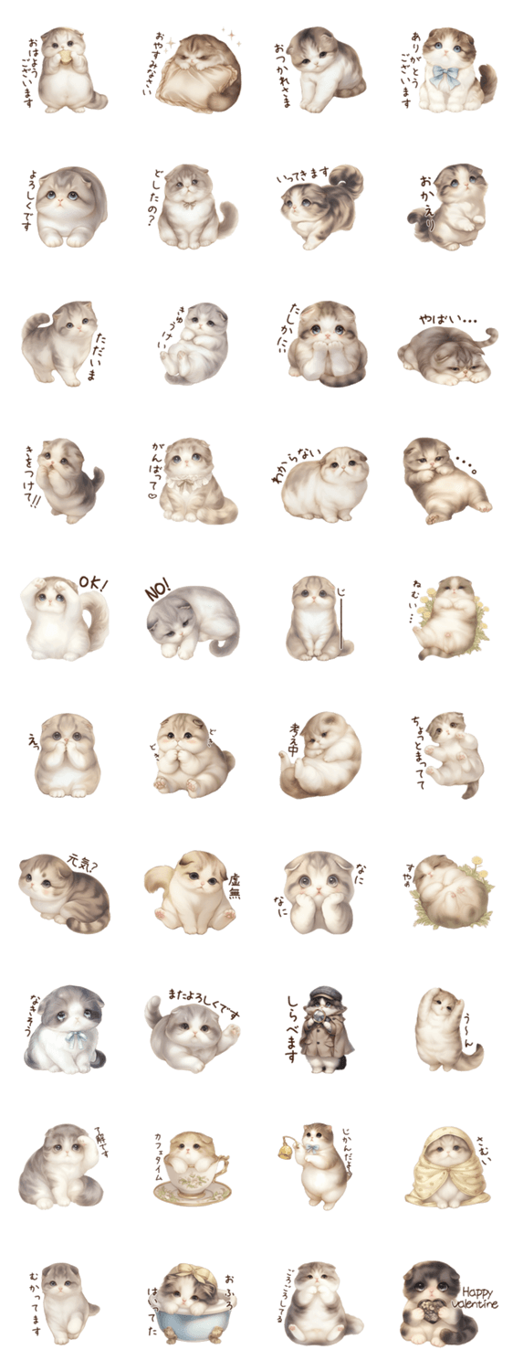| スタンプ説明 | 猫のスコティッシュフォールドのスタンプです! |