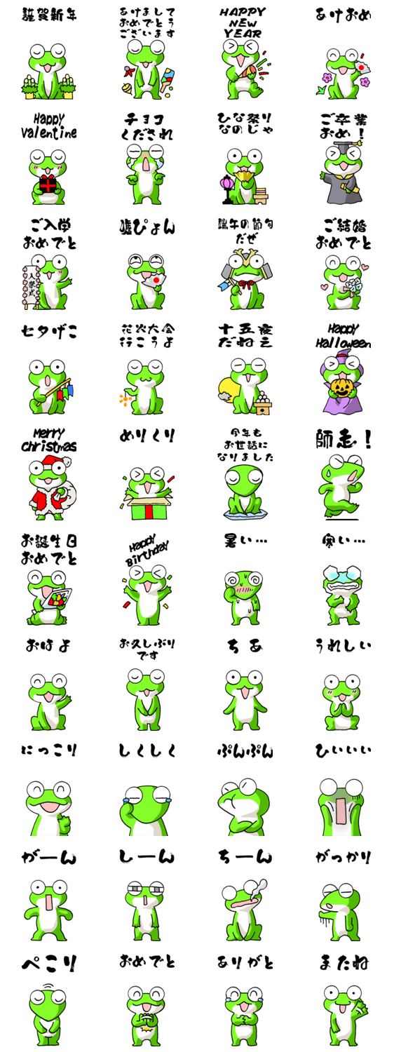 一年間使えるスタンプ(カエル)です。 ※このスタンプはトークルームで大きく表示されるBIGスタンプです。