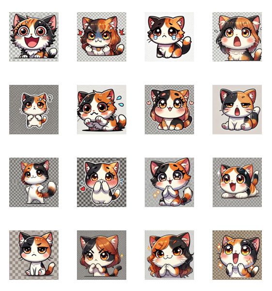 SNSで大人気のイカレタ三毛猫がスタンプに!クセになる表情が病みつきに。あなたもみんなと一緒に、この猫の魅力を体験しよう。