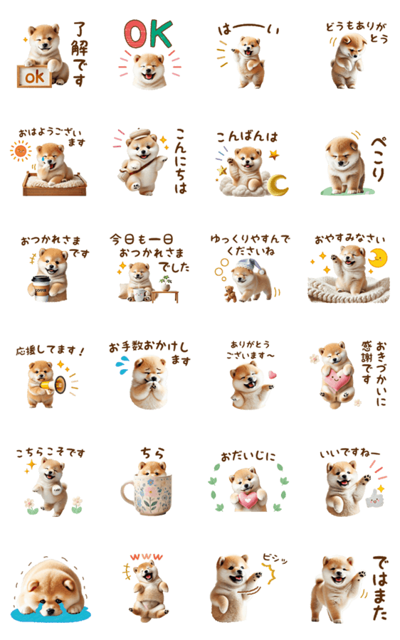 大人でも使いやすい敬語を中心に、相手をやさしく気づかえるスタンプです。挨拶など日常的に毎日使うものから、お仕事やリアクションにも使える☆しばいぬ/まめしば/柴犬