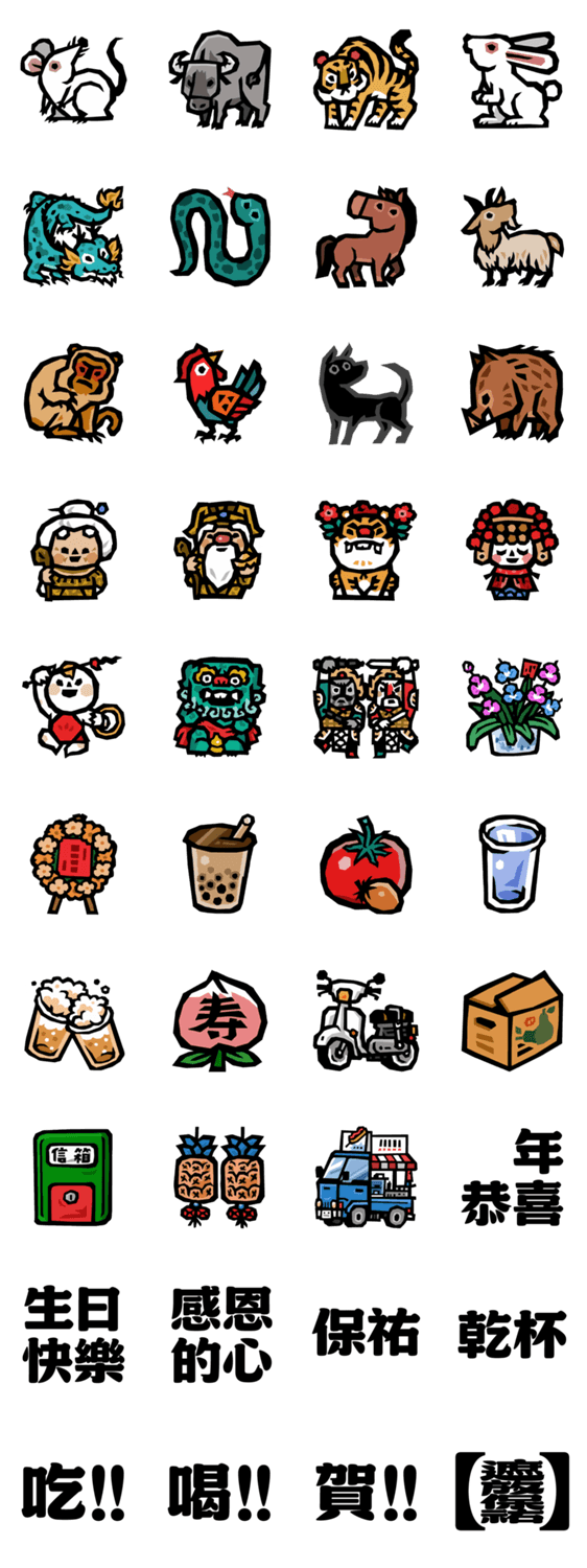Taiwanese-style emojis illustrated by artist FuTien Hung . Emojis can also be used in the font "jf-Kamamit."