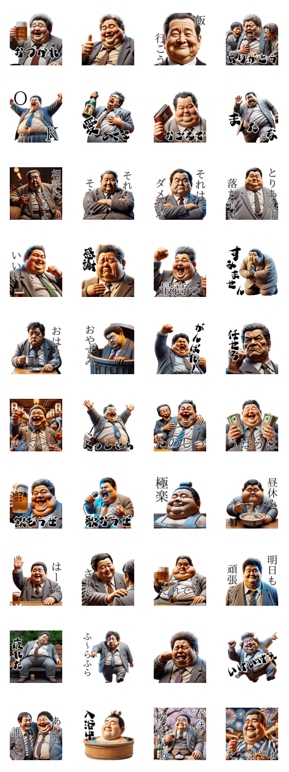 昭和のサラリーマンが様々な表情で毎日を力強く生きる!#ビジネスマン/スーツ/毎日使える/日常使い/3D/リアル/面白い/煽り/仕事/ふざける/かわいい/変顔
