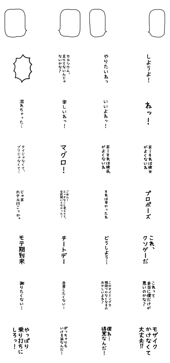 | スタンプ説明 | 組み合わせて使う汎用性バツグンの吹き出しスタンプです |