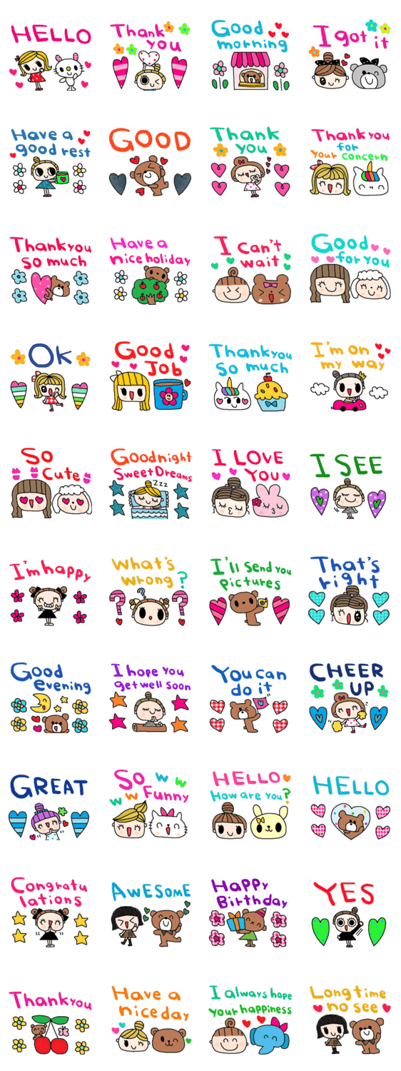 シンプルな日常会話スタンプです。お気遣いスタンプ 英語スタンプ