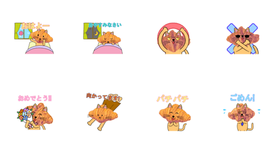 | スタンプ説明 | LINEスタンプでは既にシリーズ化しているクロワッサンとネコから生まれたキャラクターの"クロワッにゃん"が動くスタンプとなりました。好評につき第二弾になります |