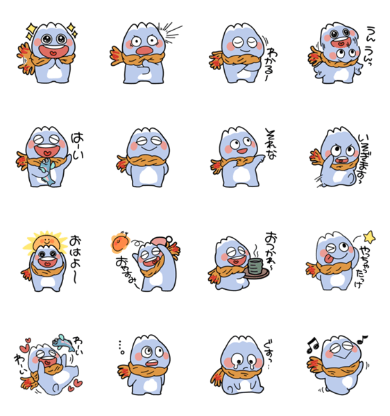 相槌やおはよう・おやすみなどの日常使い用みやたろう。みやたろうは富士宮の非公式キャラクター。ニジマスのにじちゃんがお友達で富士宮やきそばのマフラーをしているよ。