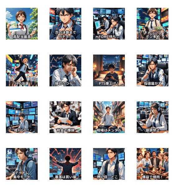 投資家向けのスタンプで、投資用語や日常のやり取りに使えるもの