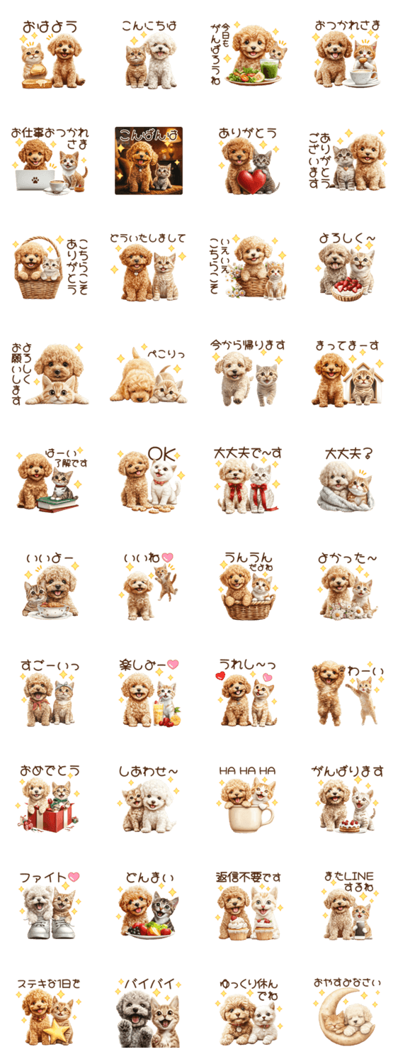 子犬のトイプードルと子猫のスコティッシュフォールドの癒しスタンプで毎日の会話をもっと楽しく♪