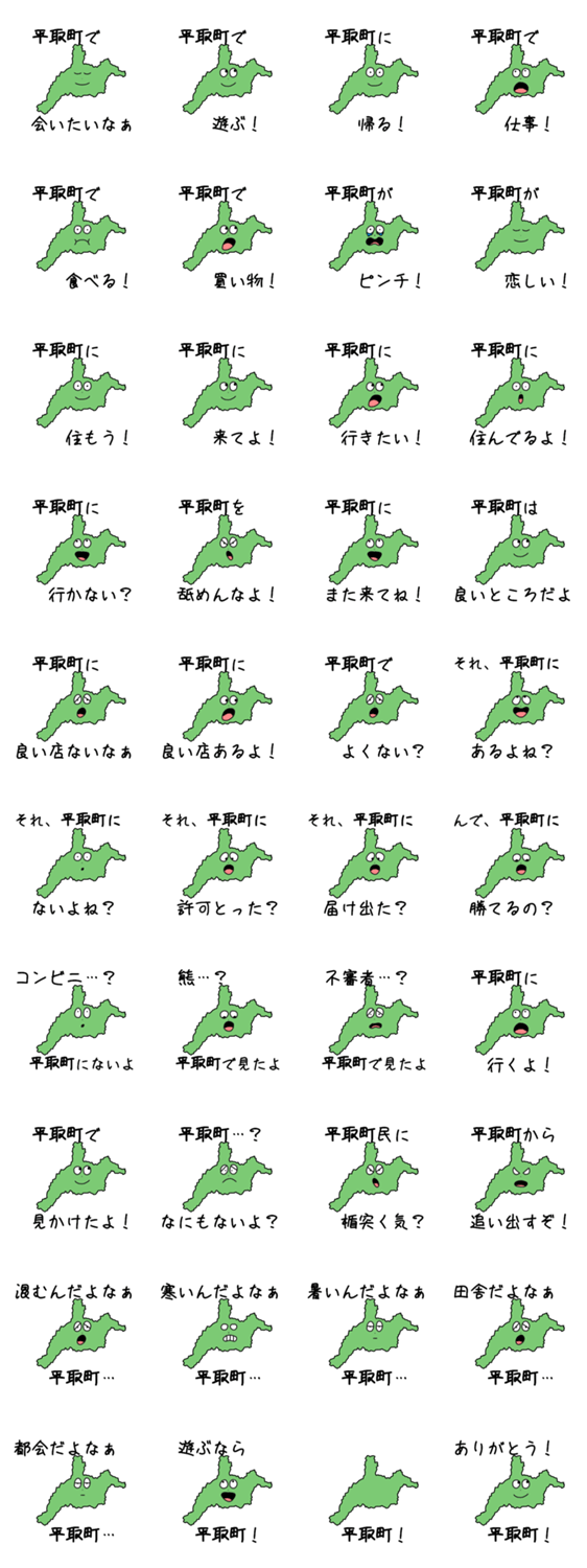 北海道日高振興局平取町(ひだかしんこうきょくびらとりちょう)に変身してしまったスライムのオリジナルスタンプです。