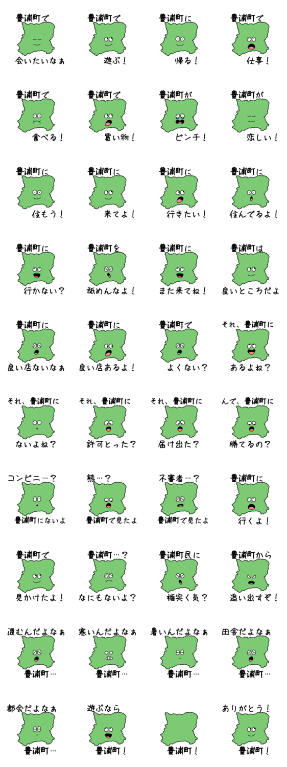 北海道胆振総合振興局豊浦町(いぶりそうごうしんこうきょくとようらちょう)に変身してしまったスライムのオリジナルスタンプです。