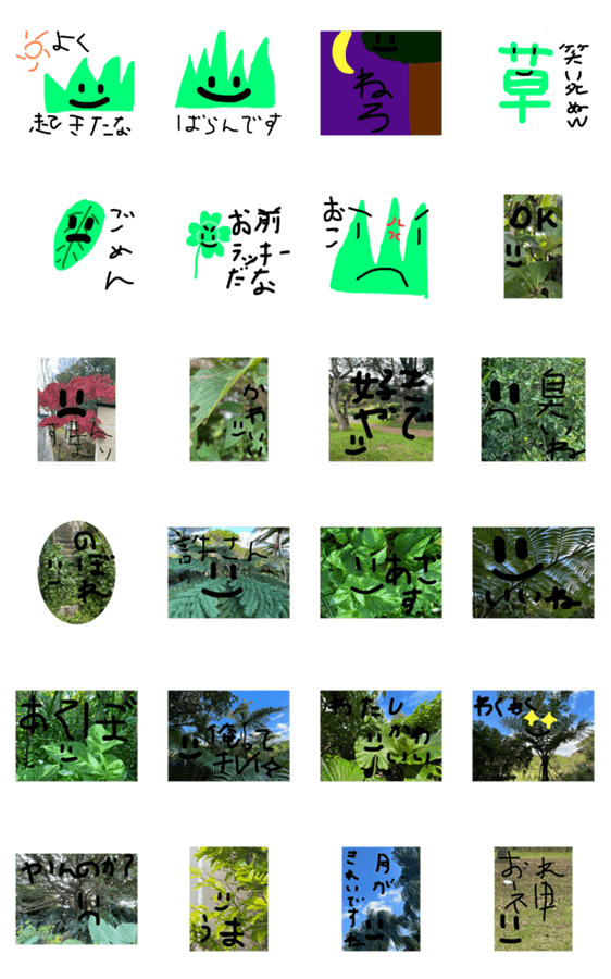 実写とイラスト混合の草たち -LINEスタンプマニア