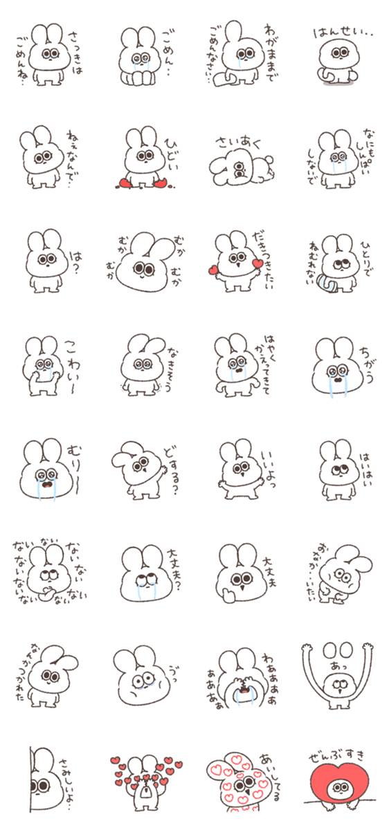 愛しすぎて情緒不安定な太っちょうさぎのスタンプです。