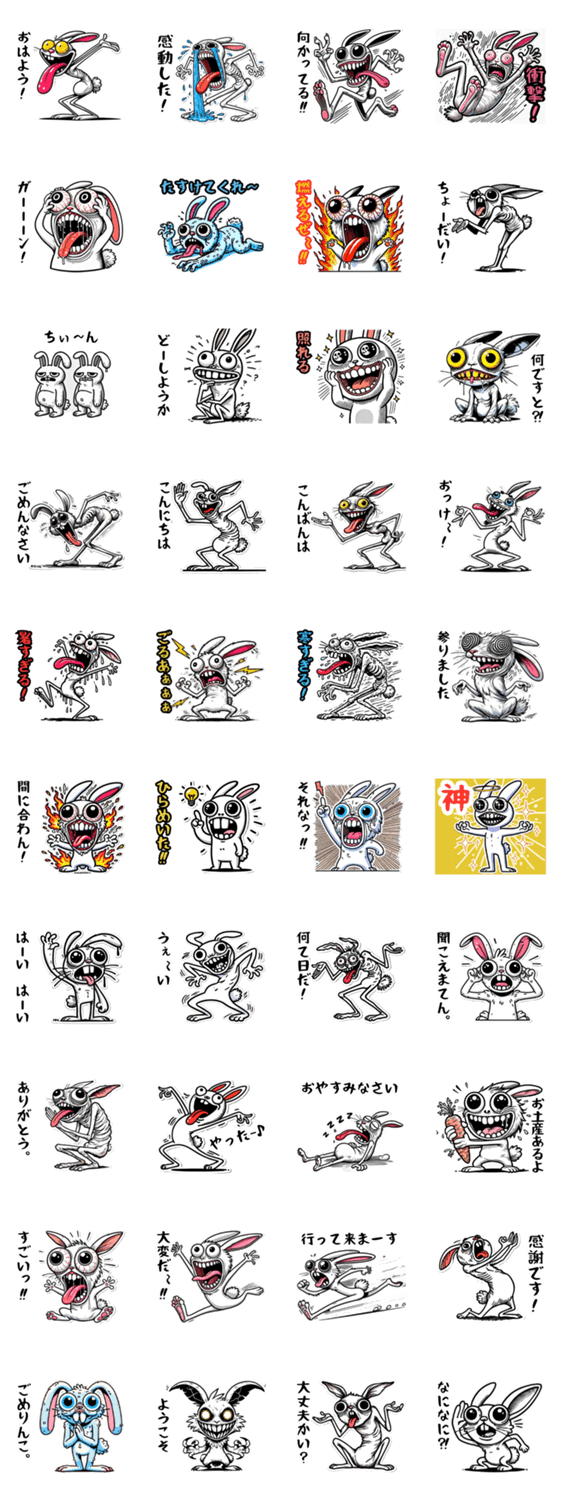 | スタンプ説明 | 癖の強すぎるうさぎが癖になってしまいます❗️コミュニケーションに是非どうぞ‼️ |