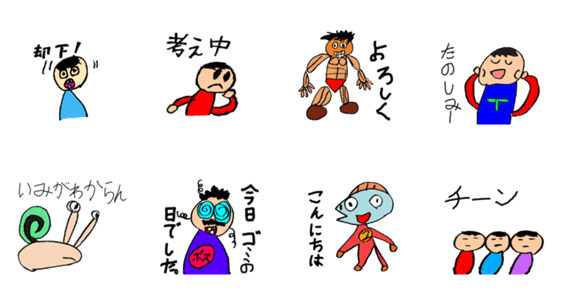 男児(8)が描いた絵で作ったスタンプです。家族で使えるかもしれないです。