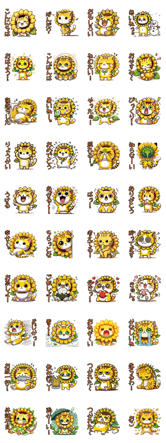 | スタンプ説明 | 花猫シリーズ第一弾の向日葵にゃんが衝撃的なデビュー。花猫シリーズ好評❗️ |