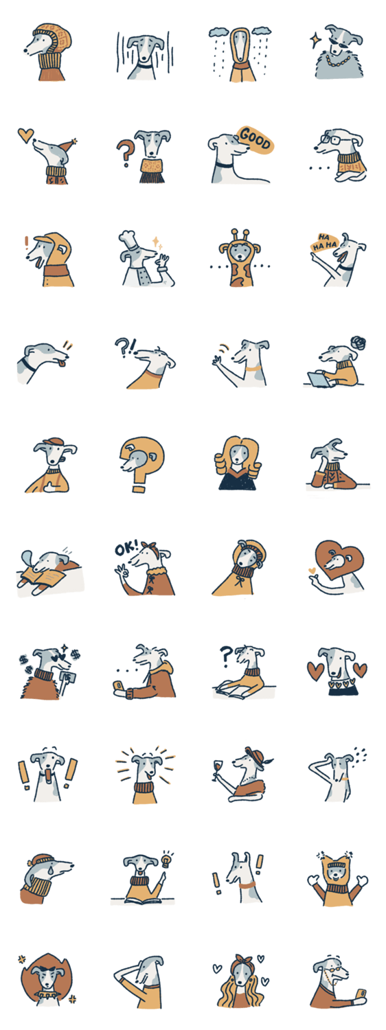 | スタンプ説明 | This is a funny greyhound sticker for all dog lovers! #humor #dog #puppy #italian #dogs |