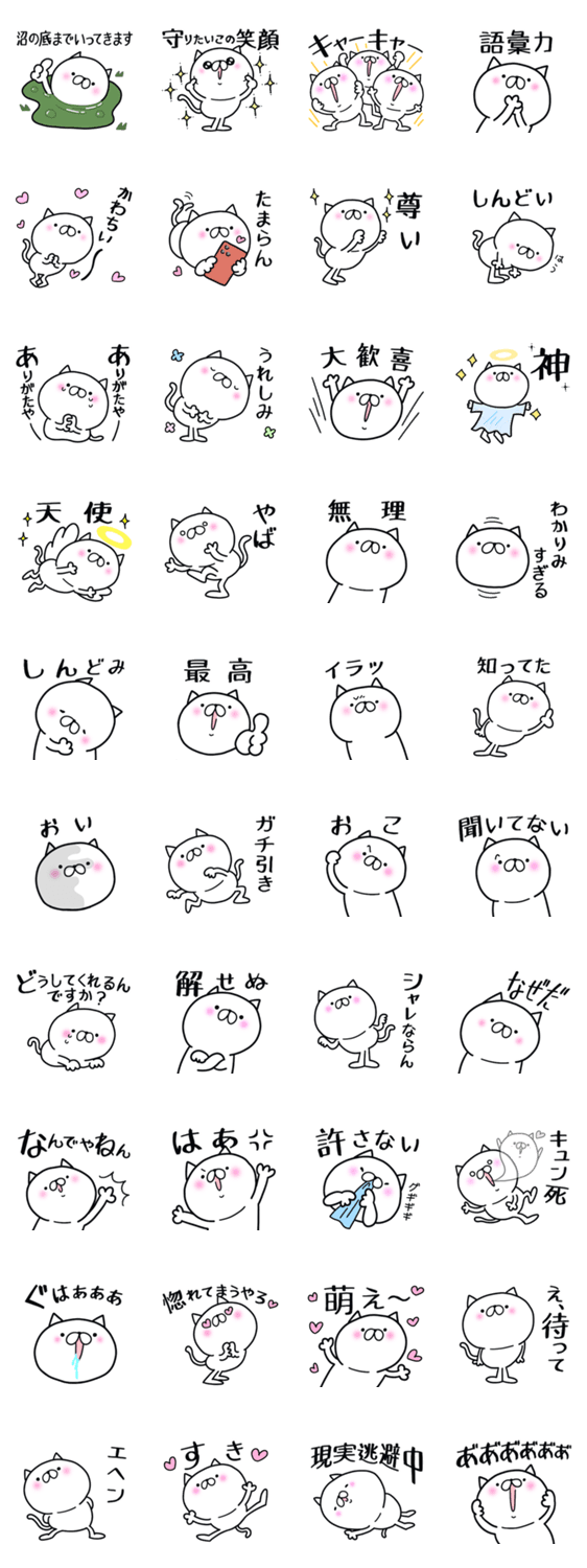白ネコのあいうえお・・・ってるスタンプ