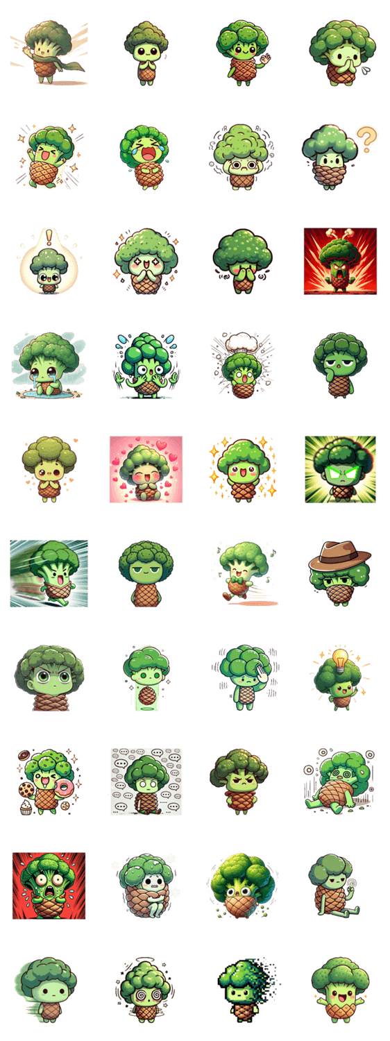 松ぼっくりとブロッコリーが合体した「まつブロ」の感情スタンプ!絵だけで気持ちが伝わるから、どんなシーンでも使いやすい♪毎日楽しく使ってね!
