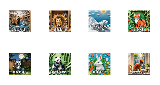 Cute animals with the image of origami, simple designs, and phrases such as "good morning", "good night" and "hello" make conversation fun!