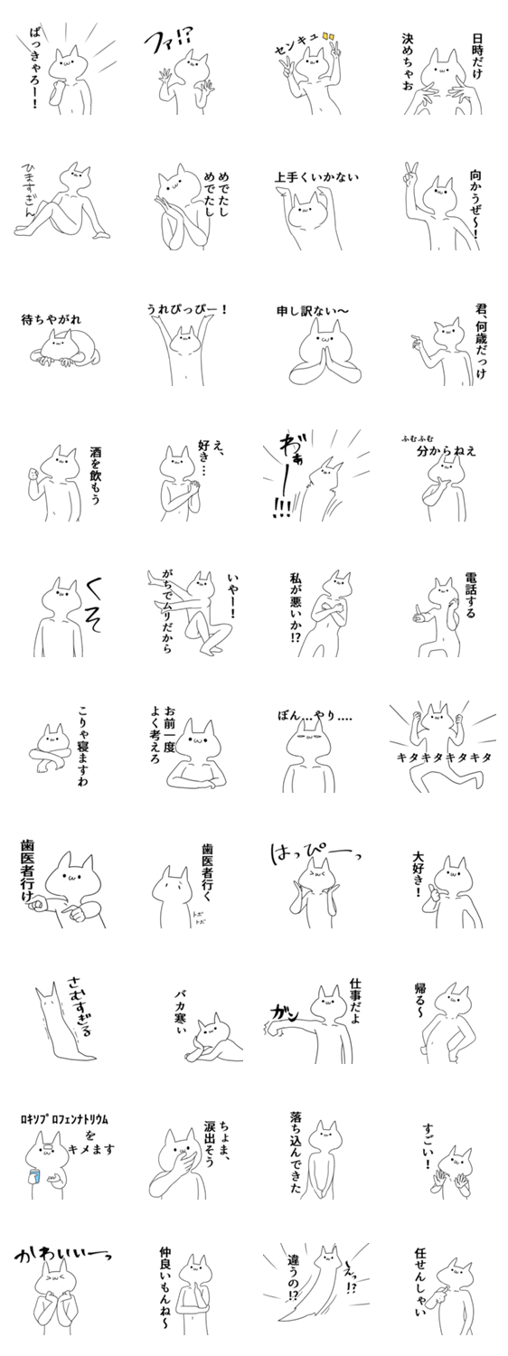 白ネコのあいうえお・・・ってるスタンプ
