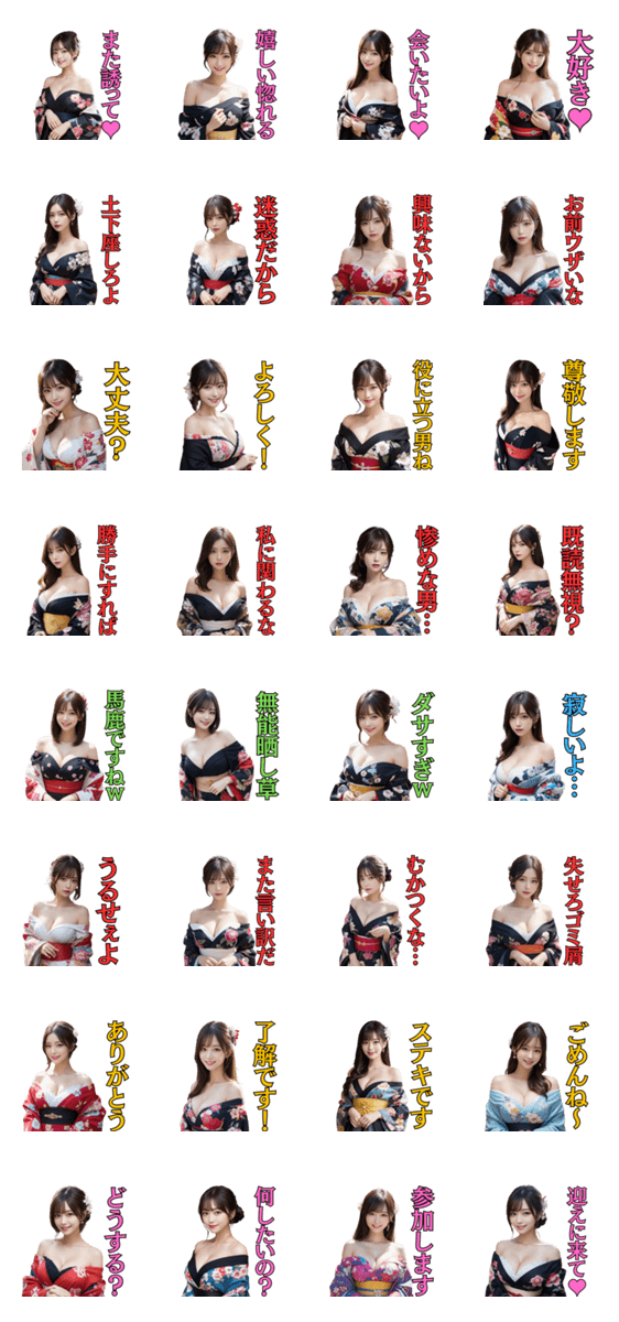 着物。花魁。和服。遊郭。振袖。美人。女性。一年中使える。有能スタンプ。煽り。罵倒。返信に便利。日常会話。怒り。ブチギレ。セクシー。大人の色気。
