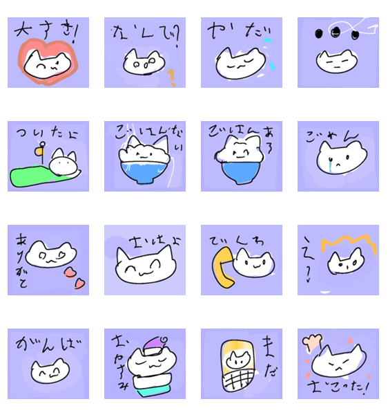 白ネコのあいうえお・・・ってるスタンプ