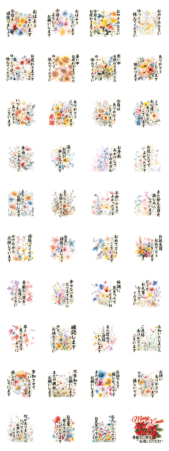 華やかな水彩のお花で伝えるスタンプです。