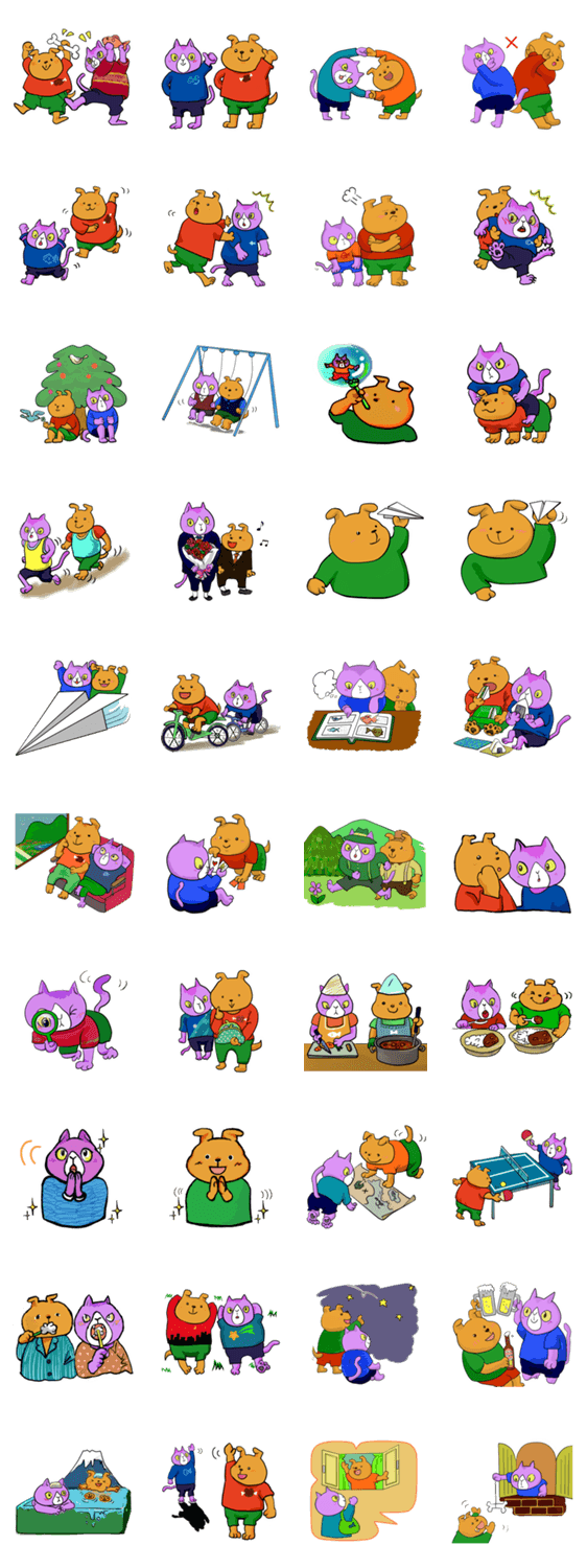 | スタンプ説明 | おきぬけけ犬のわんこたろうと、哲学猫のにゃんこのすけ。違った個性を持つ仲良し二匹の友情スタンプ。 |