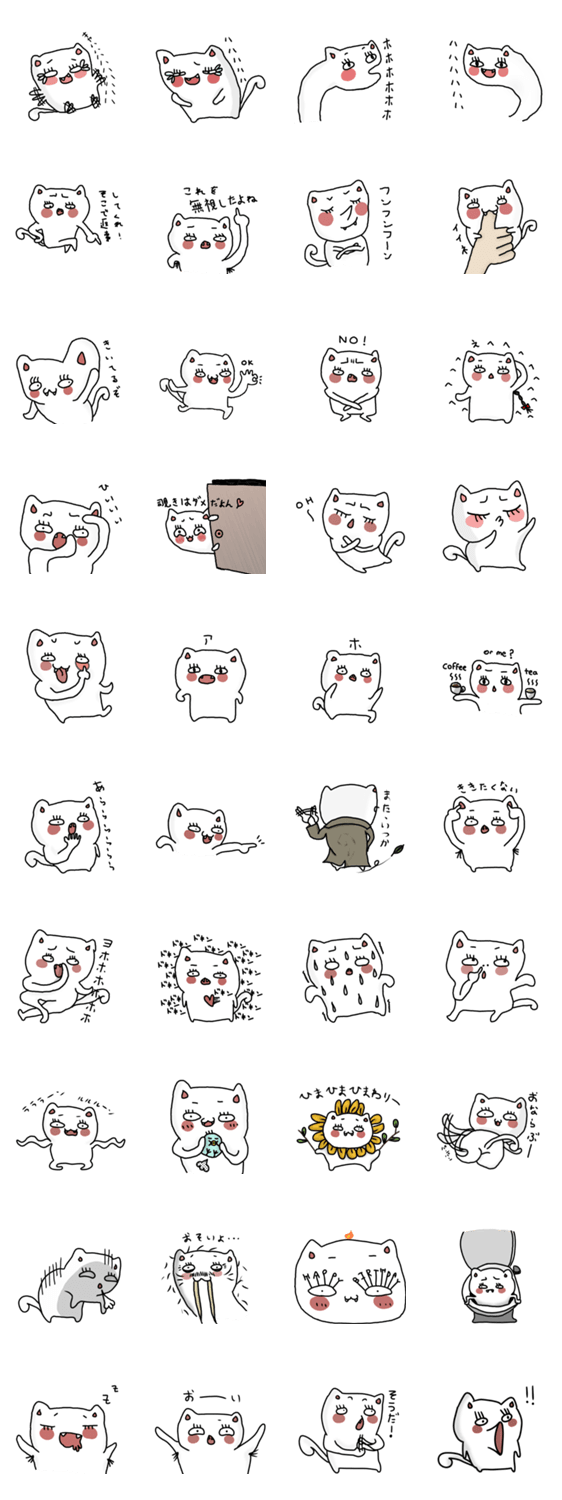白ネコのあいうえお・・・ってるスタンプ