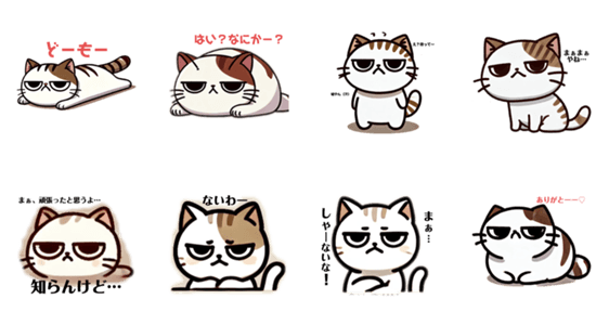 | スタンプ説明 | LINEスタンプメーカーでつくったスタンプです。太々しいけど憎めない、絶妙な上から目線の猫スタンプ! |