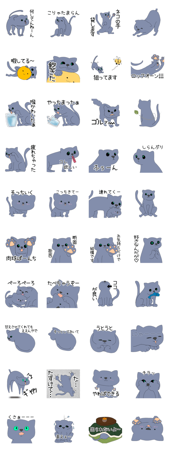 可愛い猫ちゃんロシアンブルーのゆるゆるスタンプ