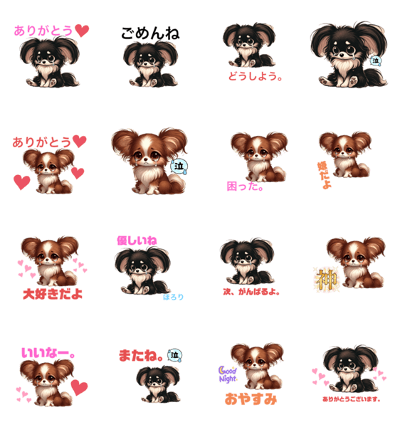 泣き顔パピヨン 茶色&黒 -LINEスタンプマニア