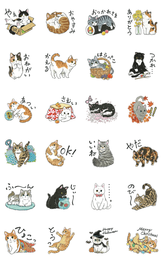 | スタンプ説明 | 自由気ままに過ごす猫ちゃんたちの、かわいいポージングをスタンプにしました。 |