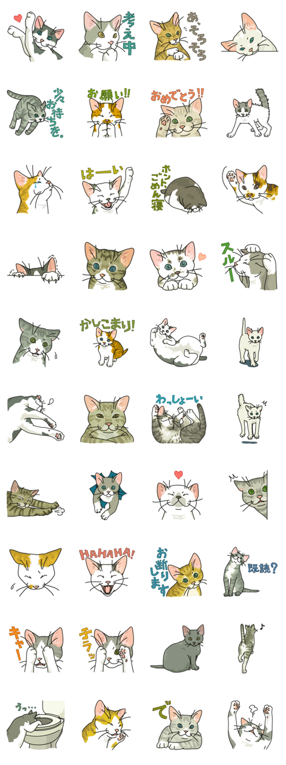ガッツリ、猫ねこネコ40匹。文字を打たなくても使える猫スタンプ多数。第二弾、今回は仔猫多め。