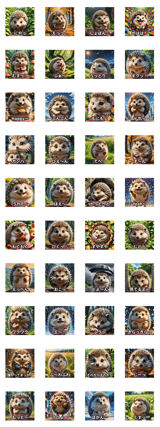 かわいいはりねずみで感情を伝えよう!うれしい、眠い、ワクワク、ぷんぷん…さまざまな気持ちを表現できるスタンプです。