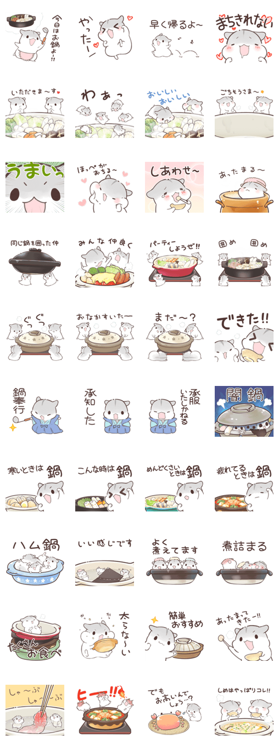 | スタンプ説明 | あわはむシリーズ第38弾。”鍋”が恋しい時に使えるハムスタースタンプです。 |