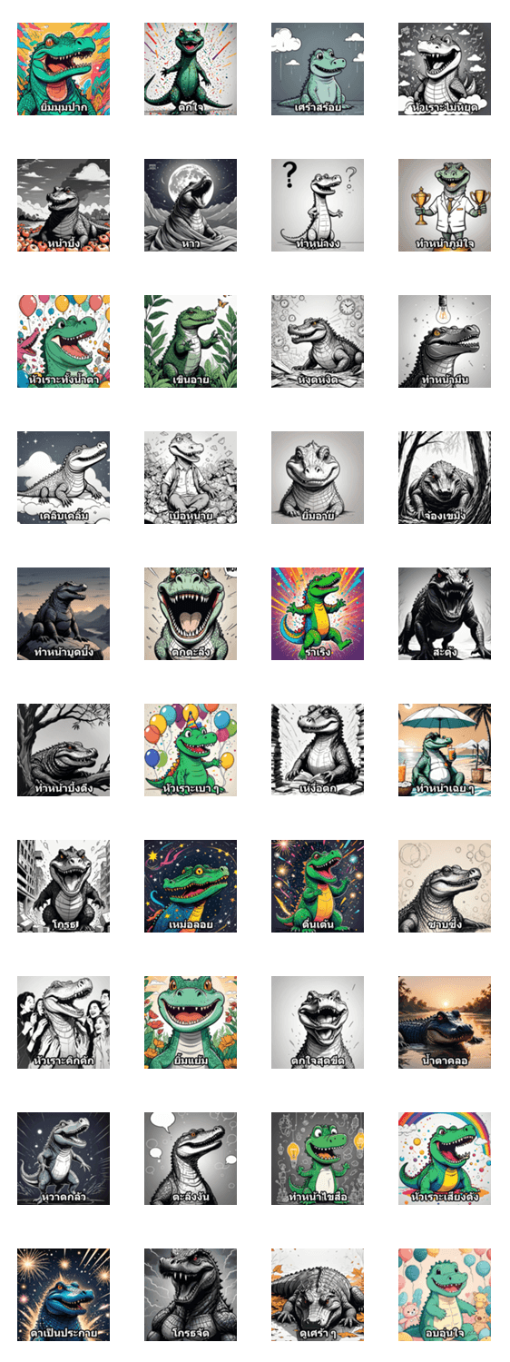ワニさんの表情で気持ちを伝えるスタンプセットです。喜び、驚き、悲しみ、怒りなど、日常の感情をワニさんが代弁します。気持ちをシンプルに伝えたいときにぴったり!